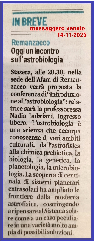Oggi un incontro sull'astrobiologia |