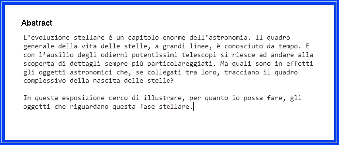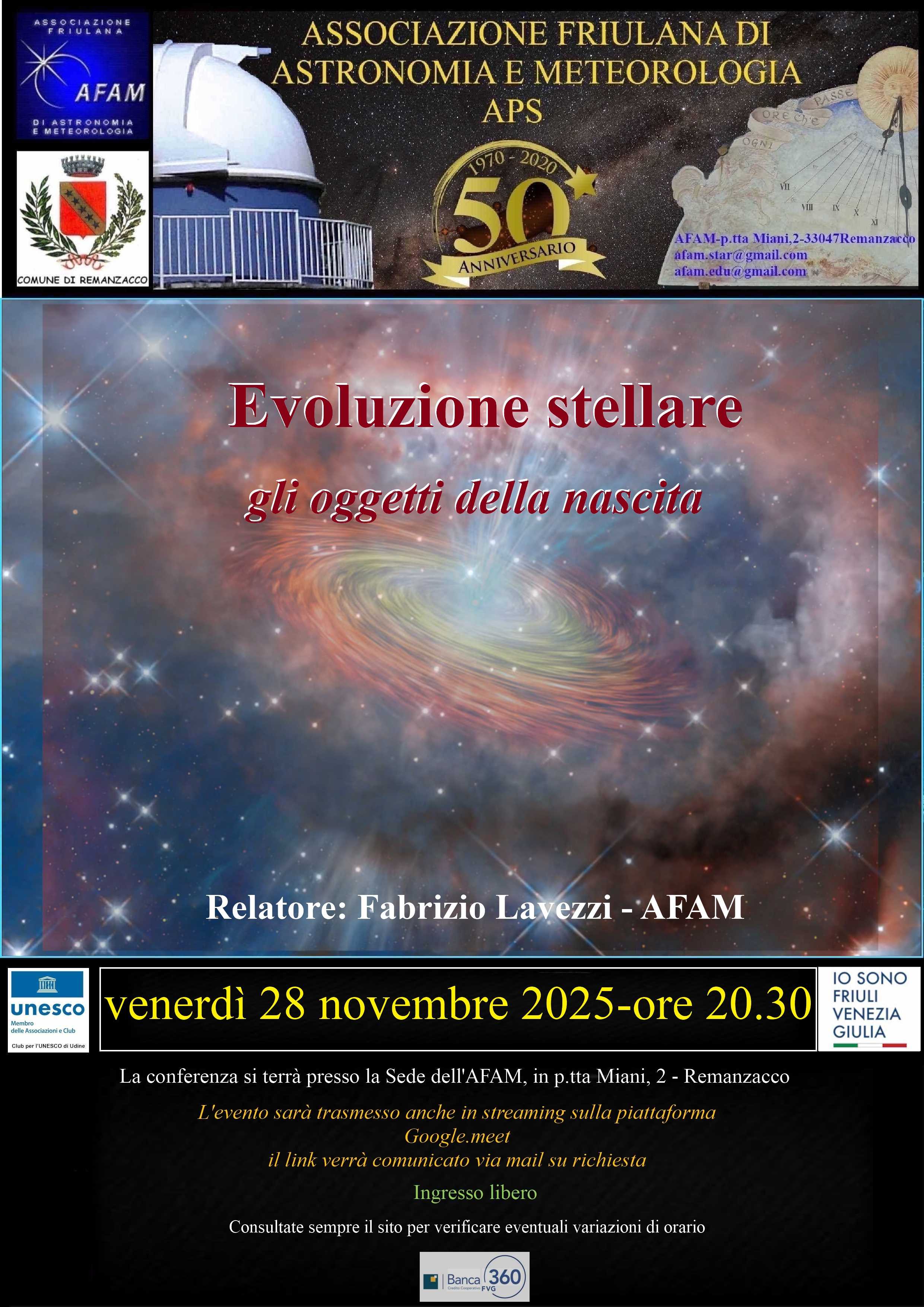 EVOLUZIONE STELLARE: gli oggetti della nascita Conferenza interna aperta al pubblico Relatrore: Fabrizio Lavezzi - AFAM abstract |