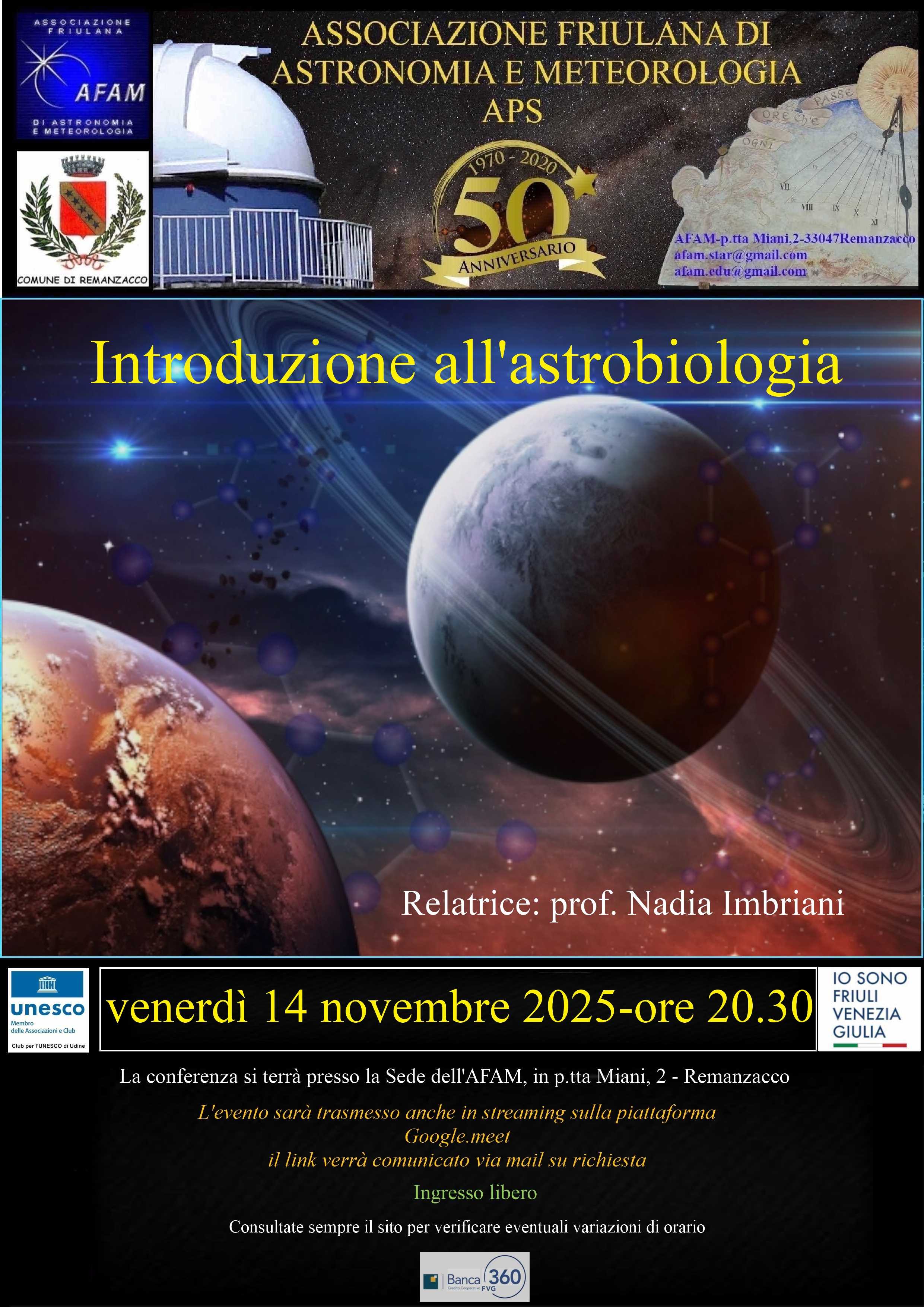 Introduzione all'astrobiologia Conferenza interna aperta al pubblico Relatrice: prof.ssa Nadia Imbriani abstract |