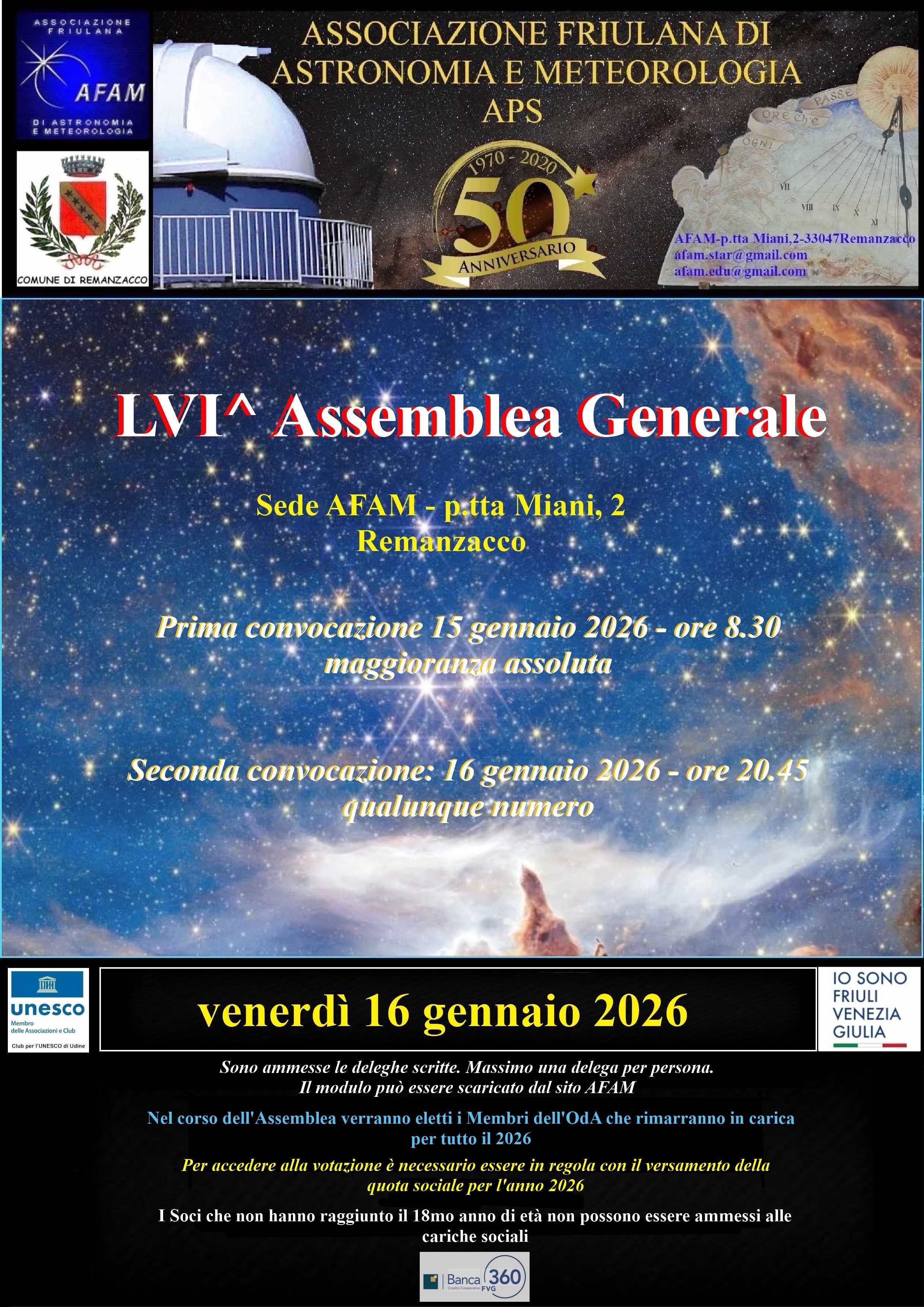 La sede e l'osservatorio dell'A.F.A.M. sono in P.zza G.Miani, 2a, 33047Remanzacco (UD)
