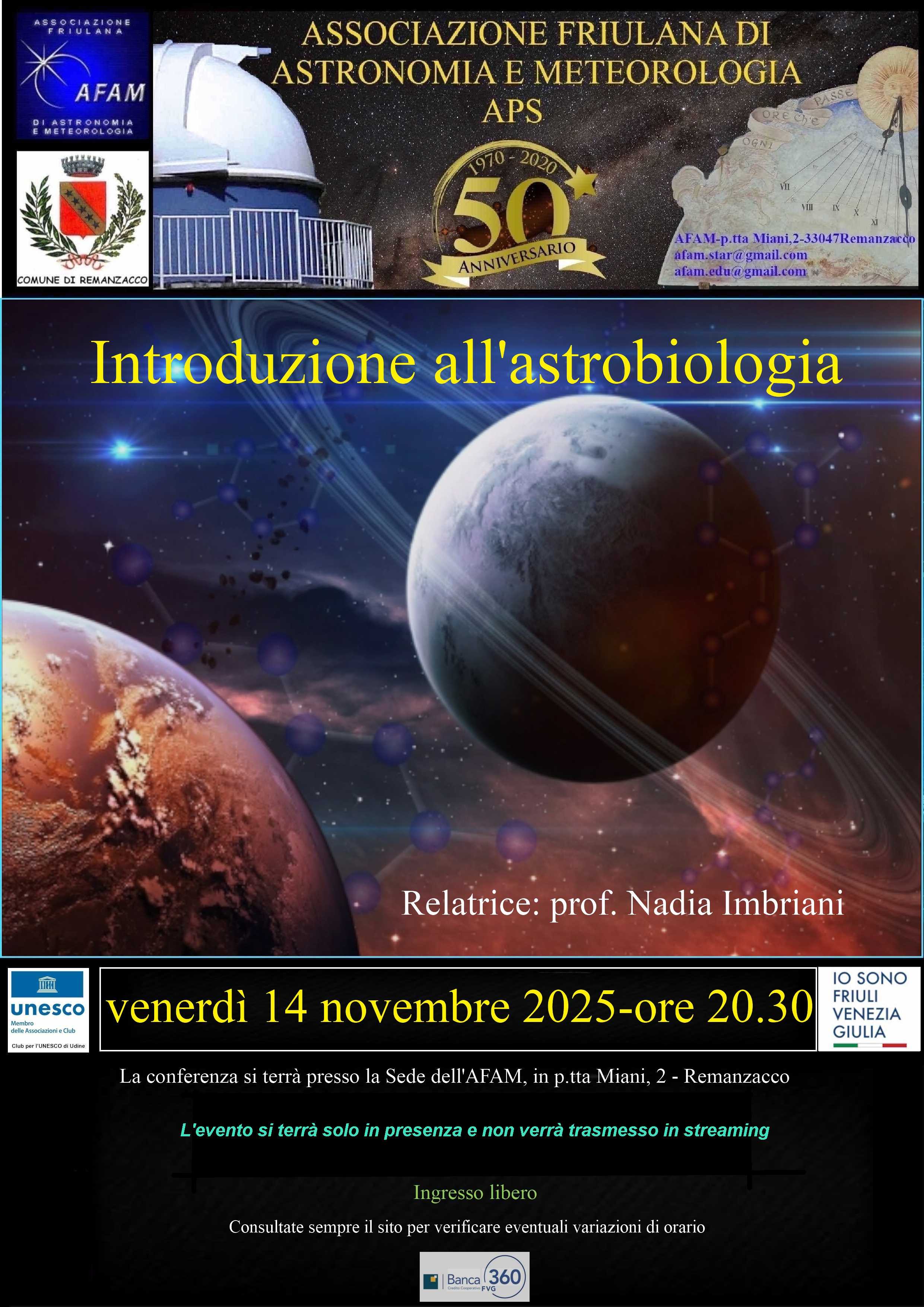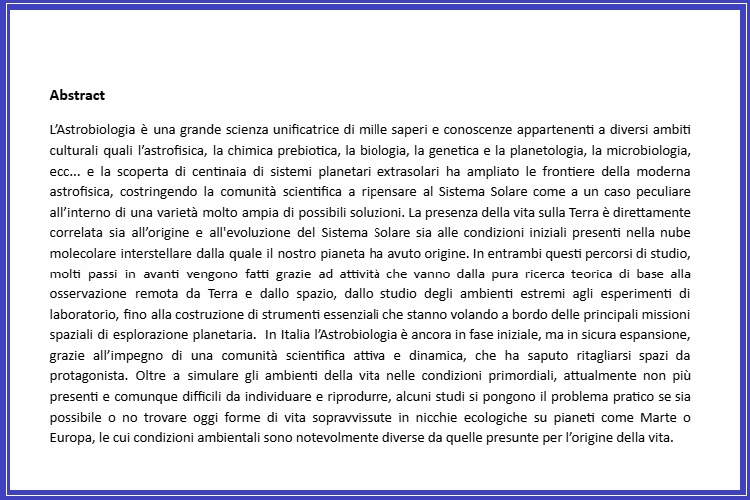 Introduzione all'astrobiologia Conferenza interna aperta al pubblico Relatrice: prof.ssa Nadia Imbriani abstract |