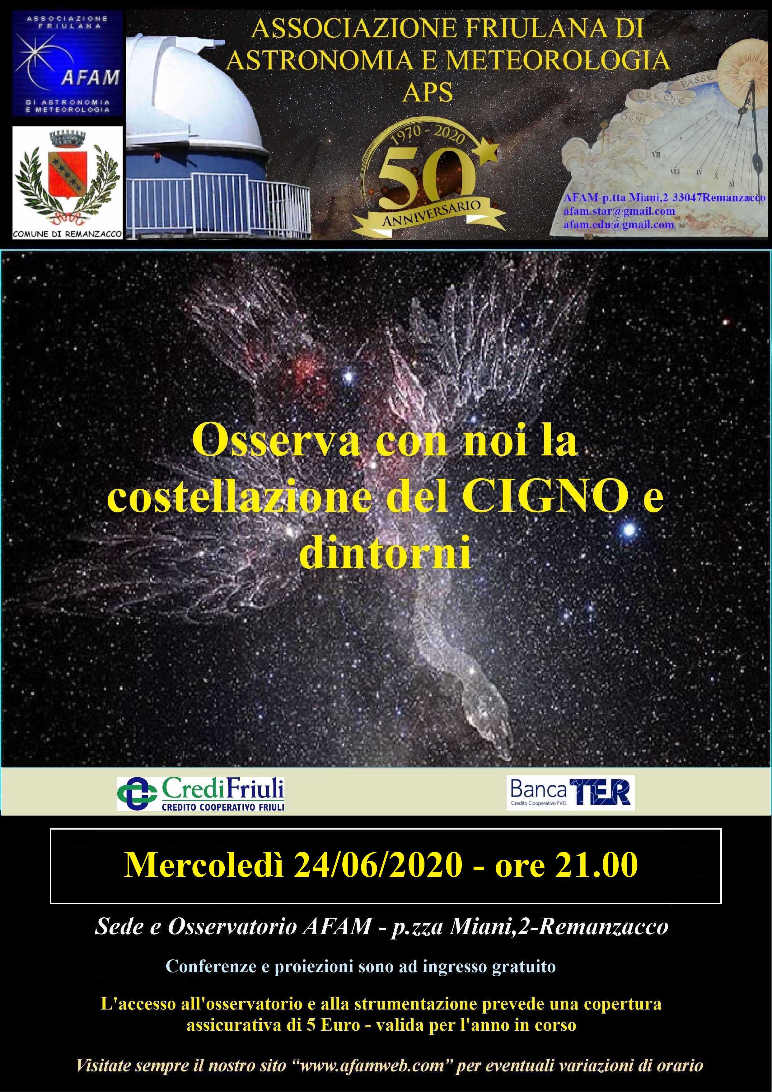 SERATA OSSERVATIVA Osserva con noi la costellazione del Cigno e dintorni |