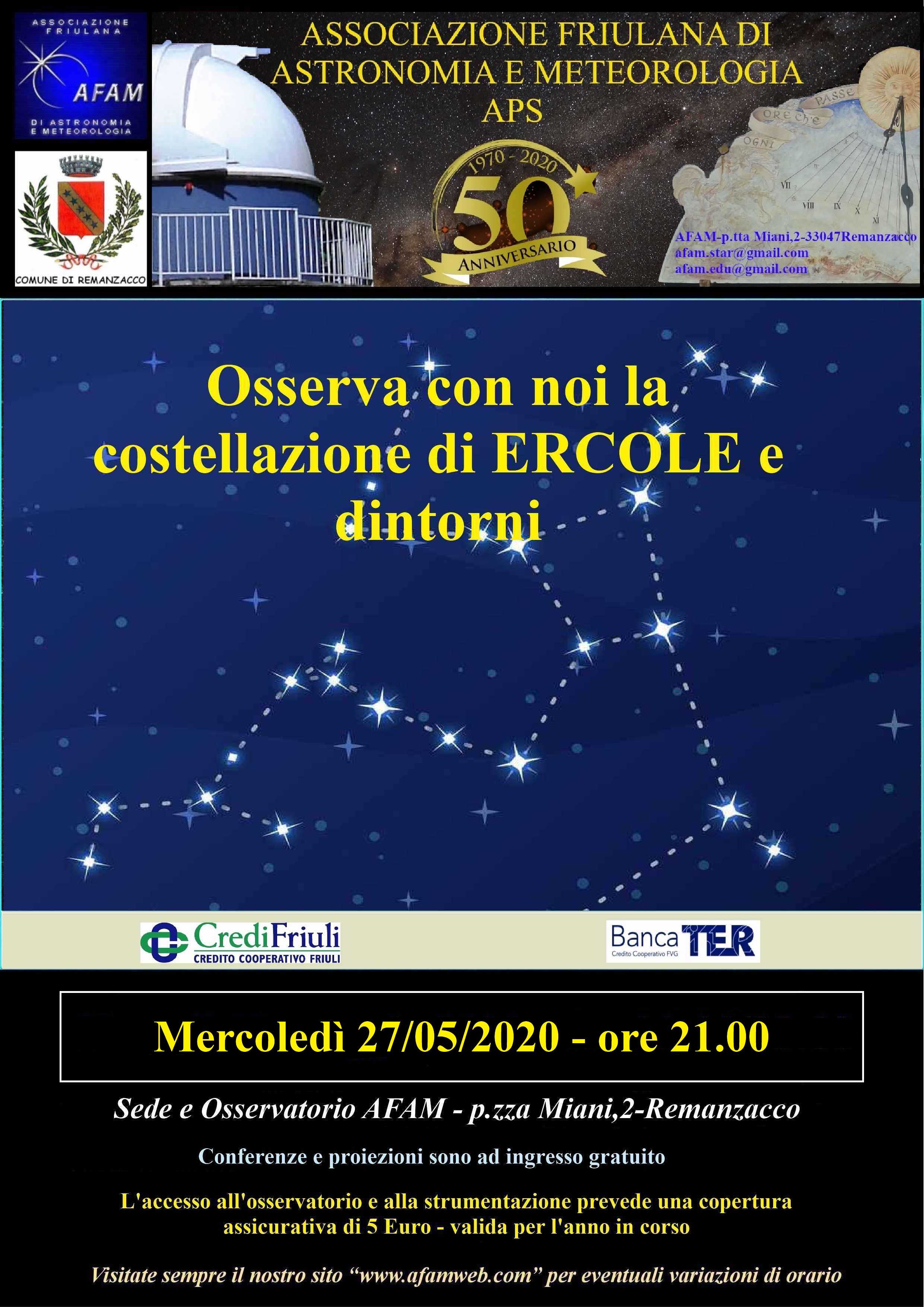 SERATA OSSERVATIVA Osserva con noi la costellazione di Ercole e dintorni |