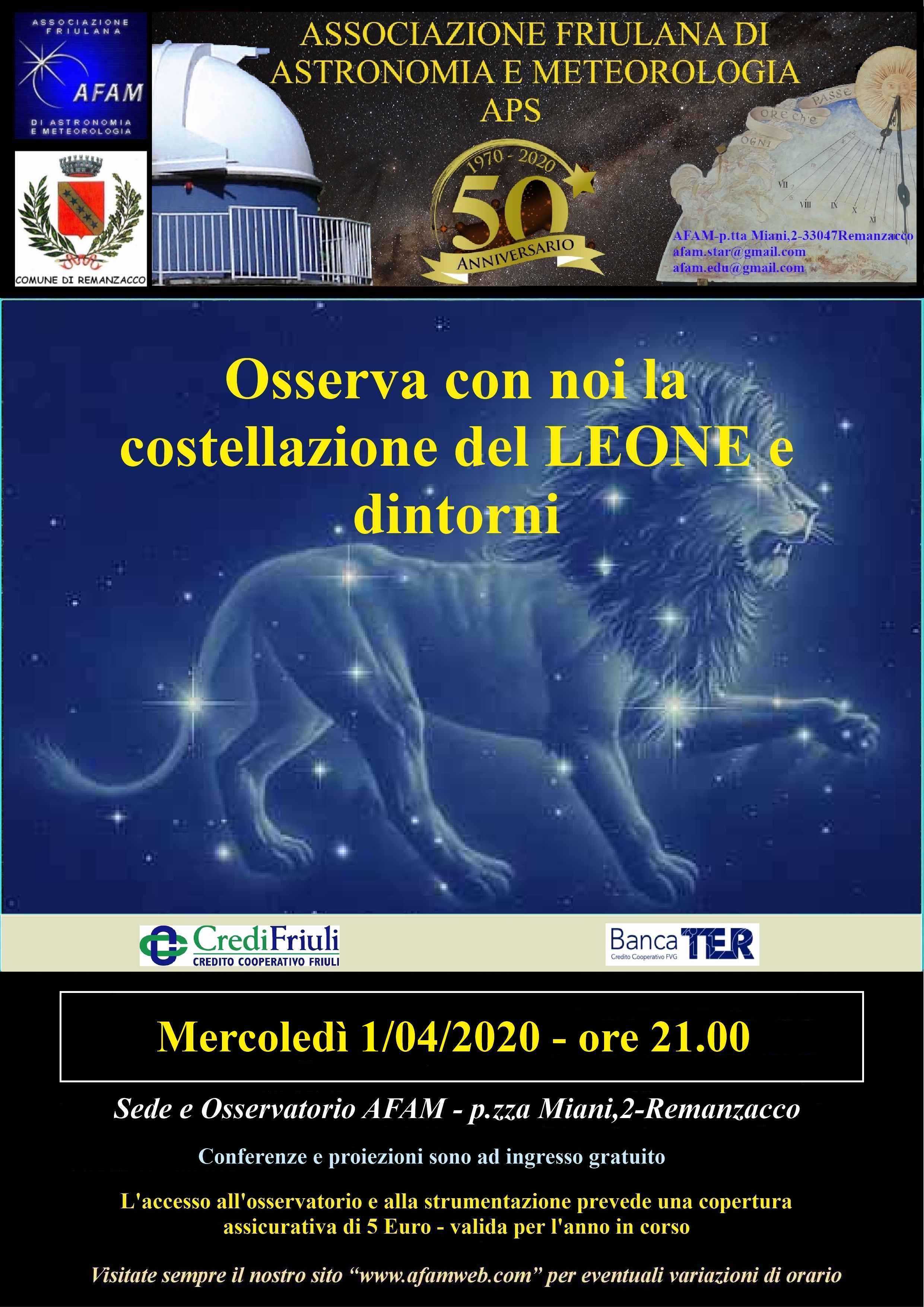 SERATA OSSERVATIVA Osserva con noi la costellazione del Leone e dintorni |