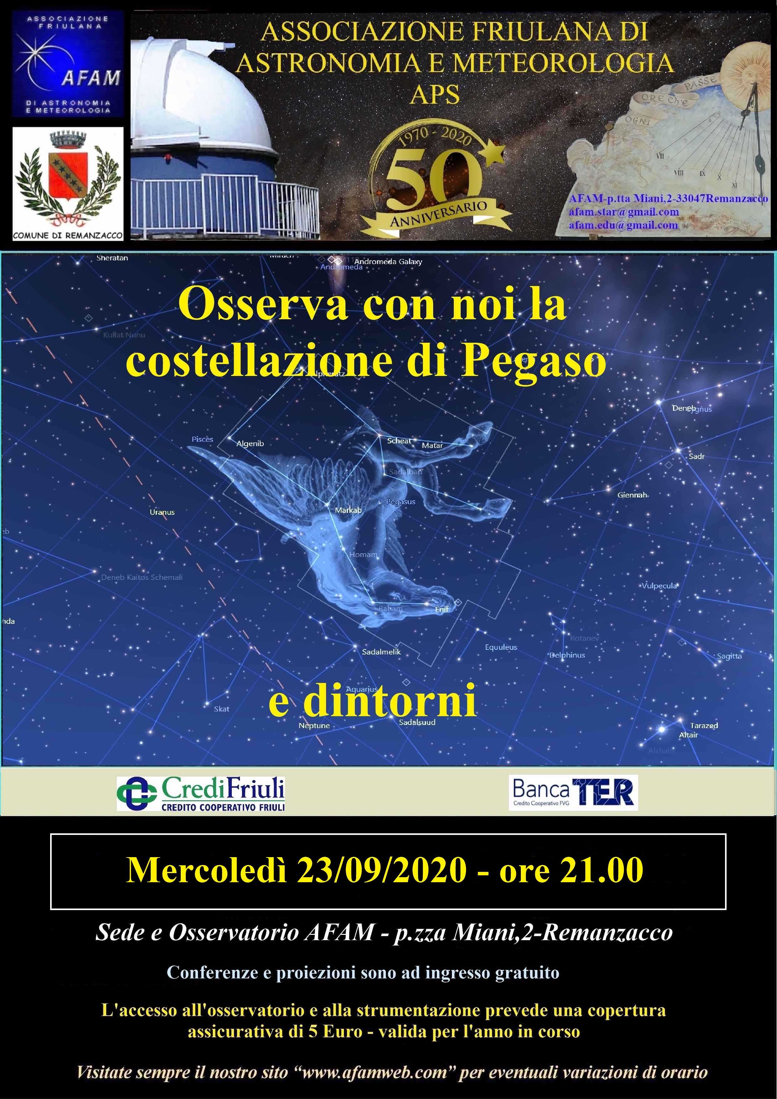 SERATA OSSERVATIVA Osserva con noi la costellazione di Pegaso e dintorni |