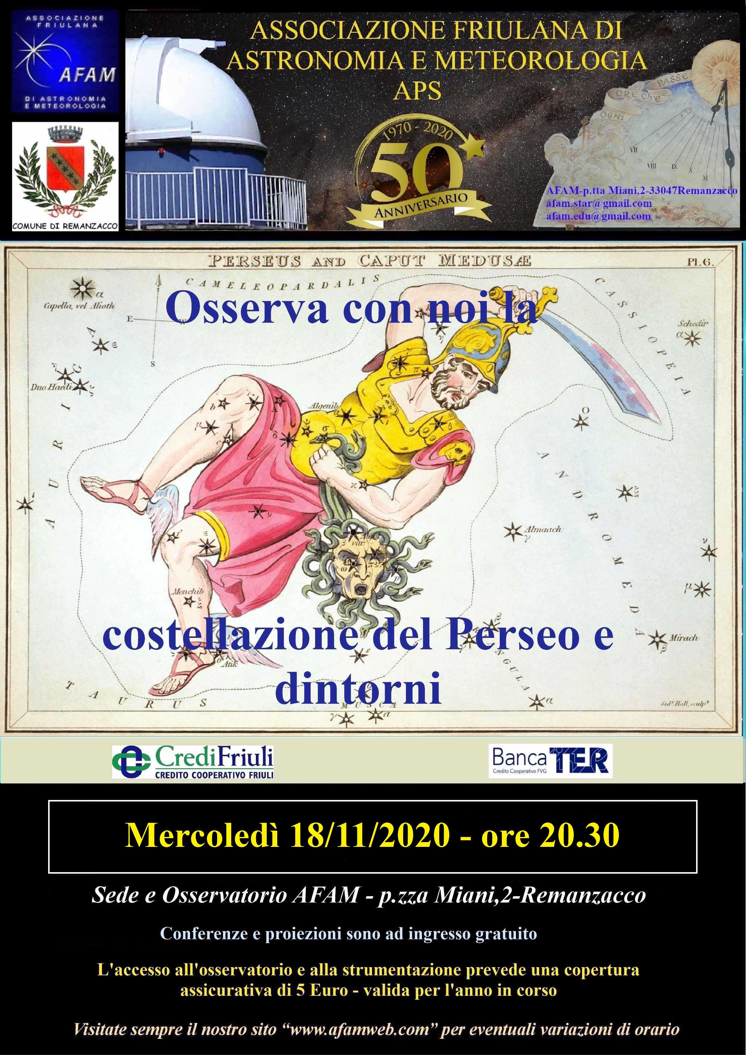 SERATA OSSERVATIVA Osserva con noi la costellazione del Perseo e dintorni |