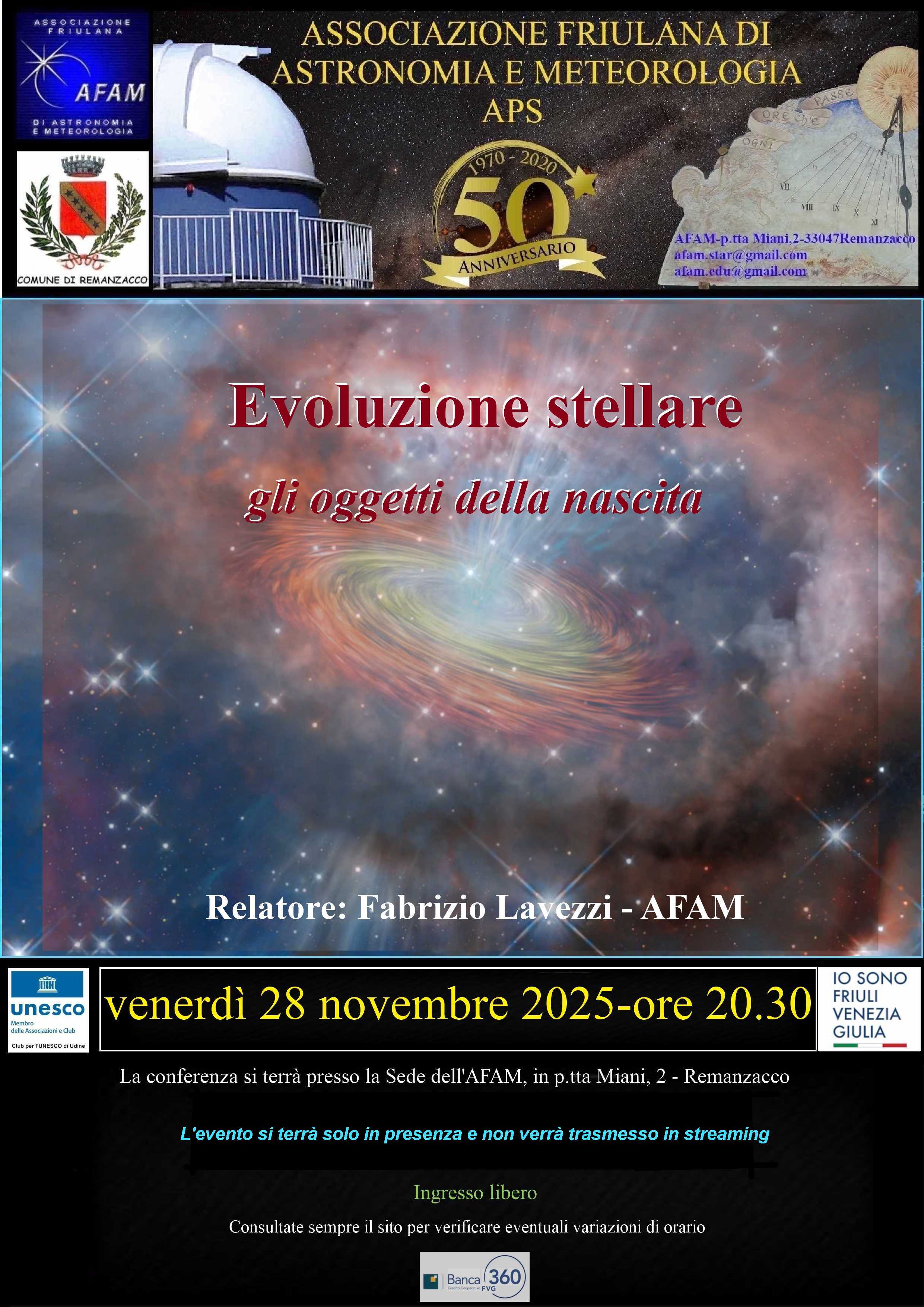 EVOLUZIONE STELLARE: gli oggetti della nascita Conferenza interna aperta al pubblico Relatrore: Fabrizio Lavezzi - AFAM abstract |
