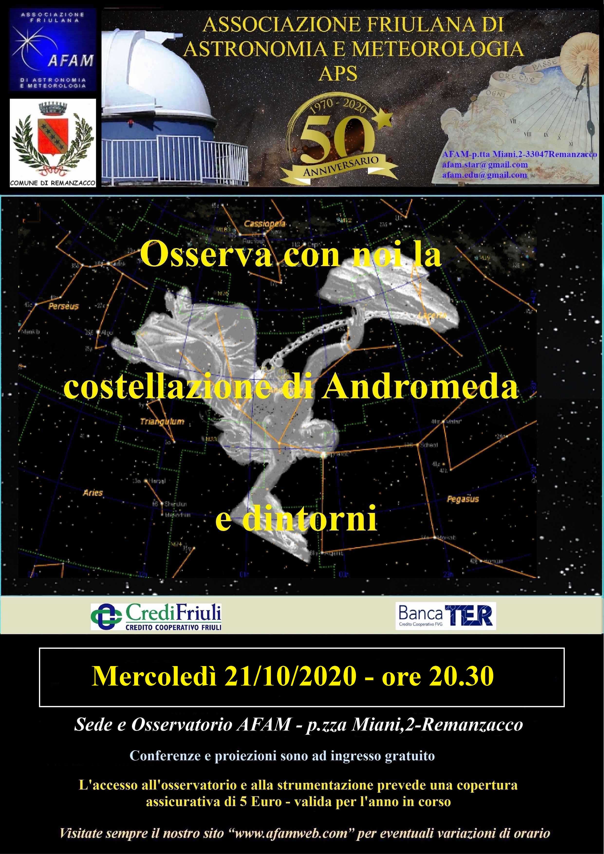 SERATA OSSERVATIVA Osserva con noi la costellazione del Andromeda e dintorni |