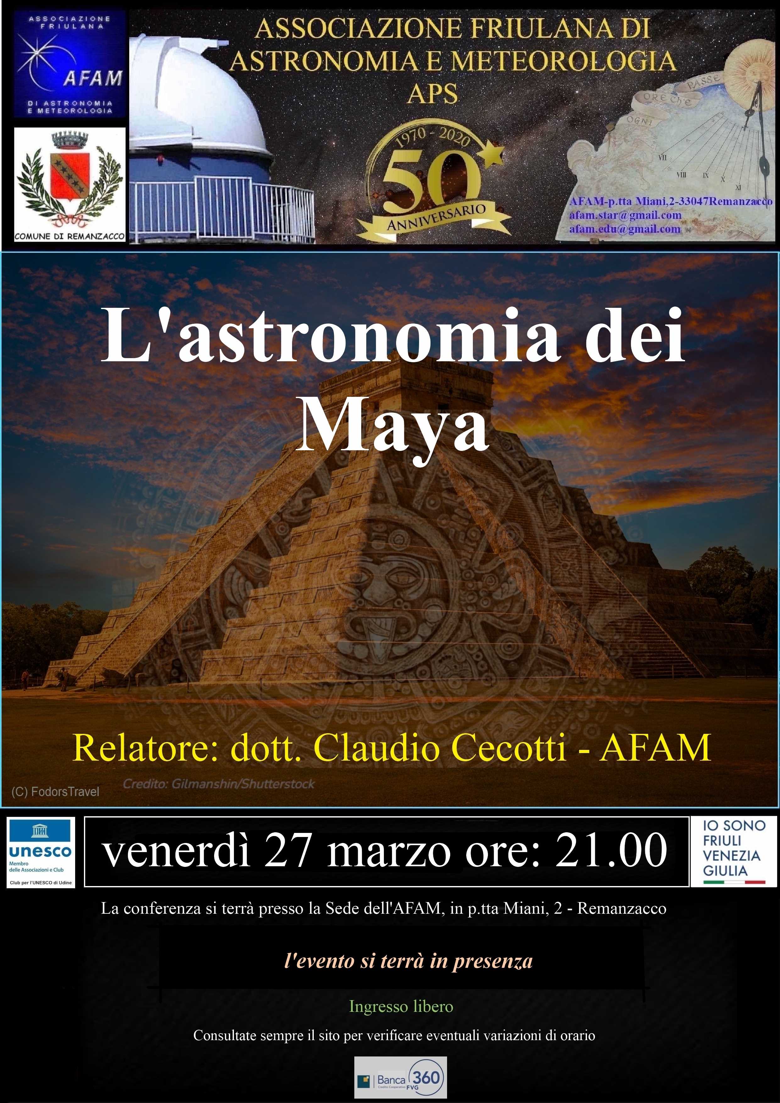 La sede e l'osservatorio dell'A.F.A.M. sono in P.zza G.Miani, 2a, 33047Remanzacco (UD)