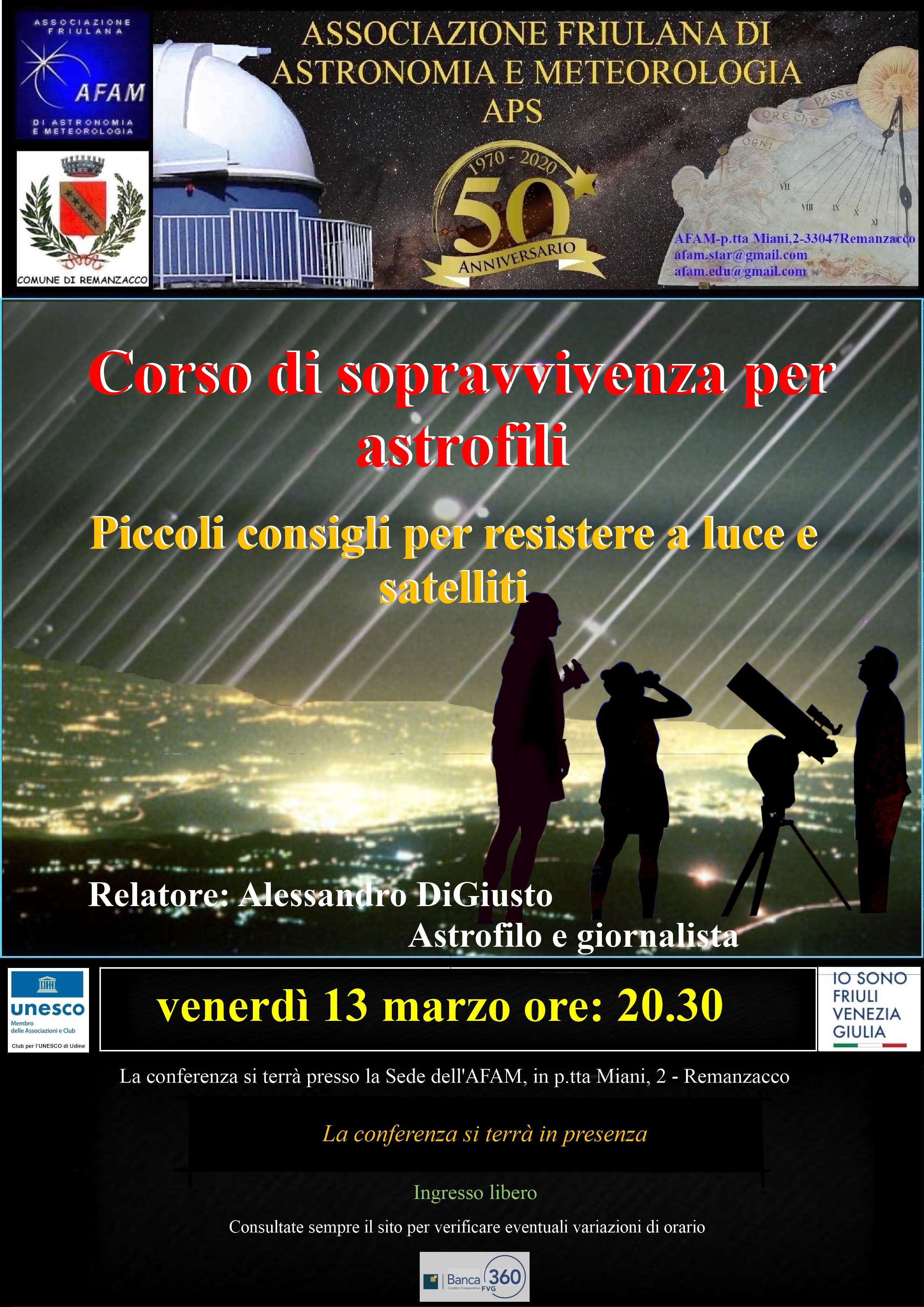 La sede e l'osservatorio dell'A.F.A.M. sono in P.zza G.Miani, 2a, 33047Remanzacco (UD)