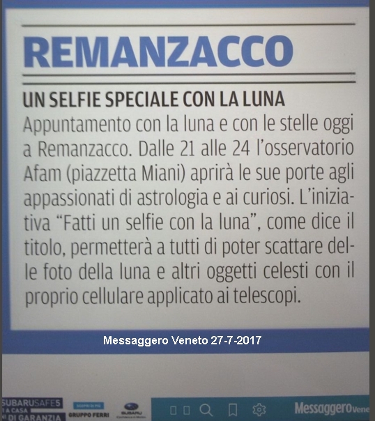 L'omaggio a Malignani e un nuovo telescopio per i 50 dell'AFAM |
